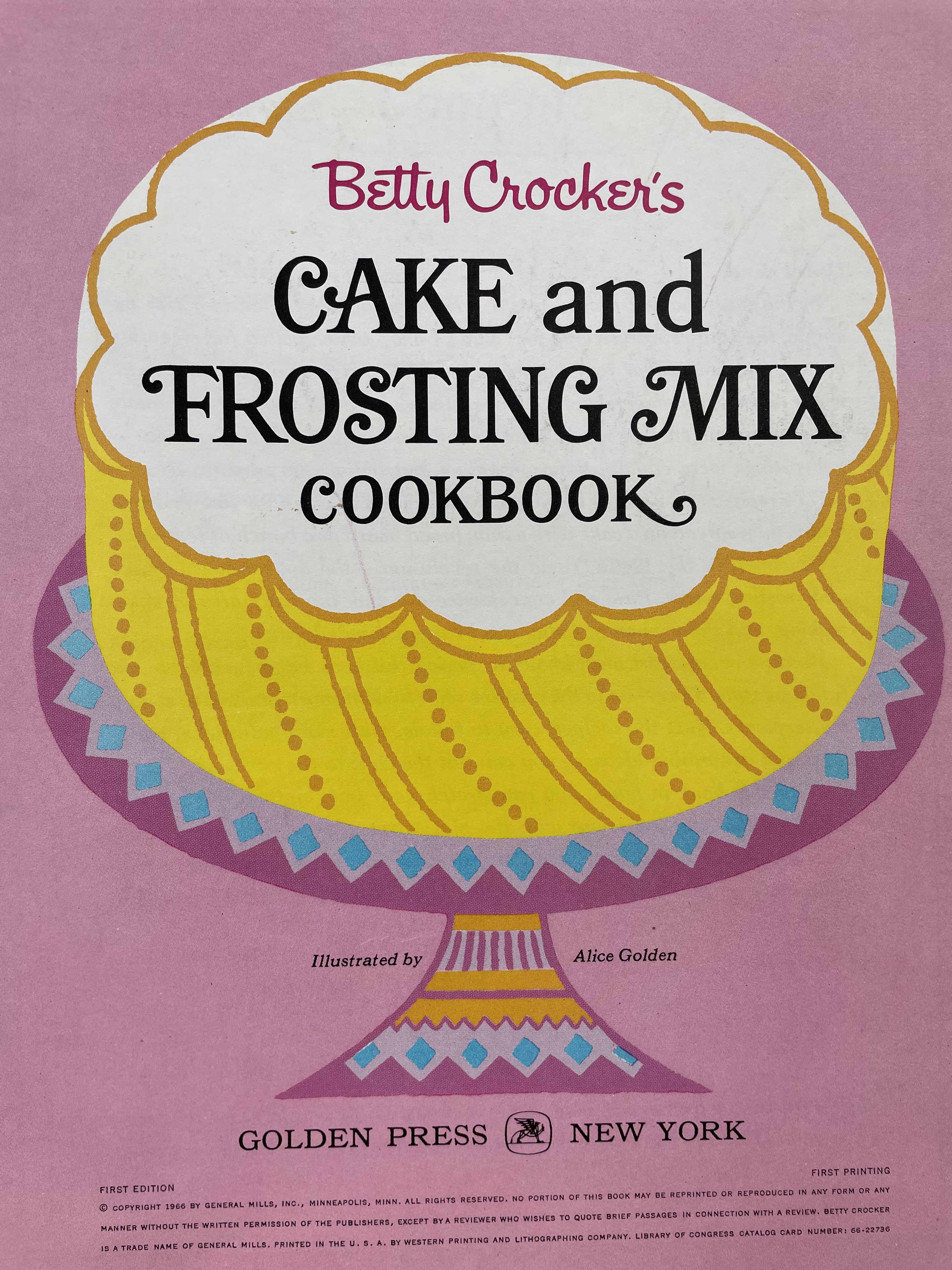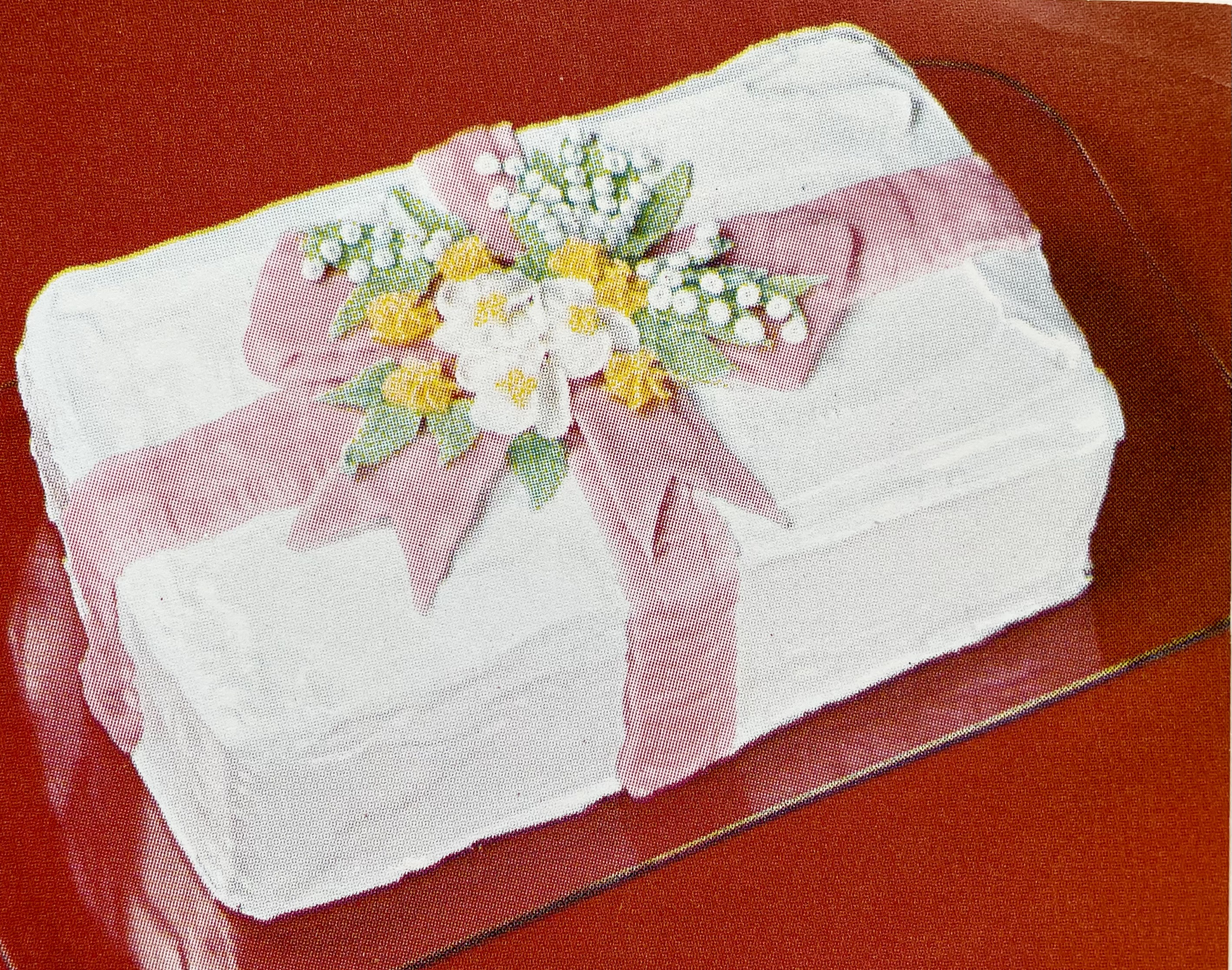 I love a playful birthday cake, too. When I’m designing my own, kitsch is my number one priority. So as I was looking for inspiration for this year’s birthday cake, I kept coming back to an image of a cake shaped like a present from Betty Crocker’s Cake and Frosting Mix Cookbook (1966). I love the idea of the gift-wrapped cake because I really do think making someone a birthday cake is a present in and of itself. An act of love with thought and effort, so what better fitting a design than to make one shaped like an actual gift? It’s perfectly meta. The other reason I love this idea so much is because it is easy for anybody. If you can frost a cake and fill up a simple piping bag, you can make it too. The design can be as simple or as fancy as you want. You can keep it pretty simple (like mine) or really go over the top with some piped flowers like the one below.